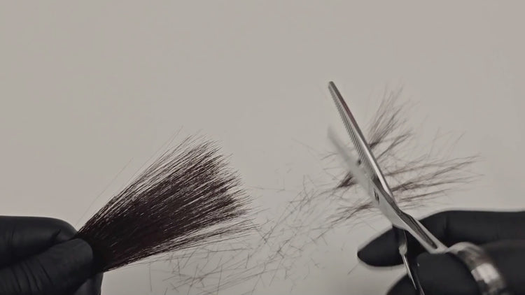 Flip the shear so the teeth face the client’s head when thinning near the scalp. This inverted pass can influence how new hairs grow in the opposite direction—useful for cowlick management and flow redirection.
